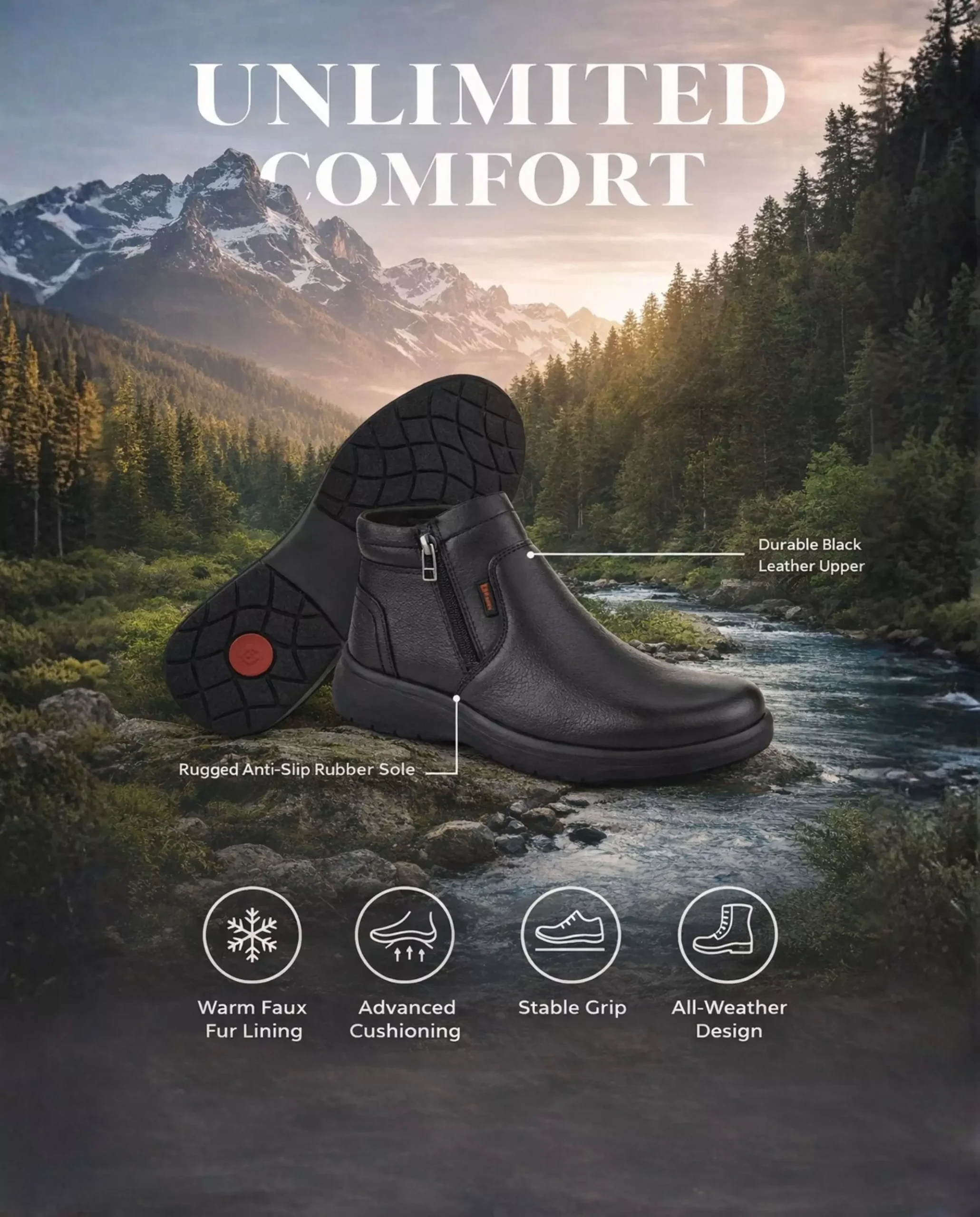 TSF LEATHER WINTER FUR BOOT FOR MEN’s (BLACK)
