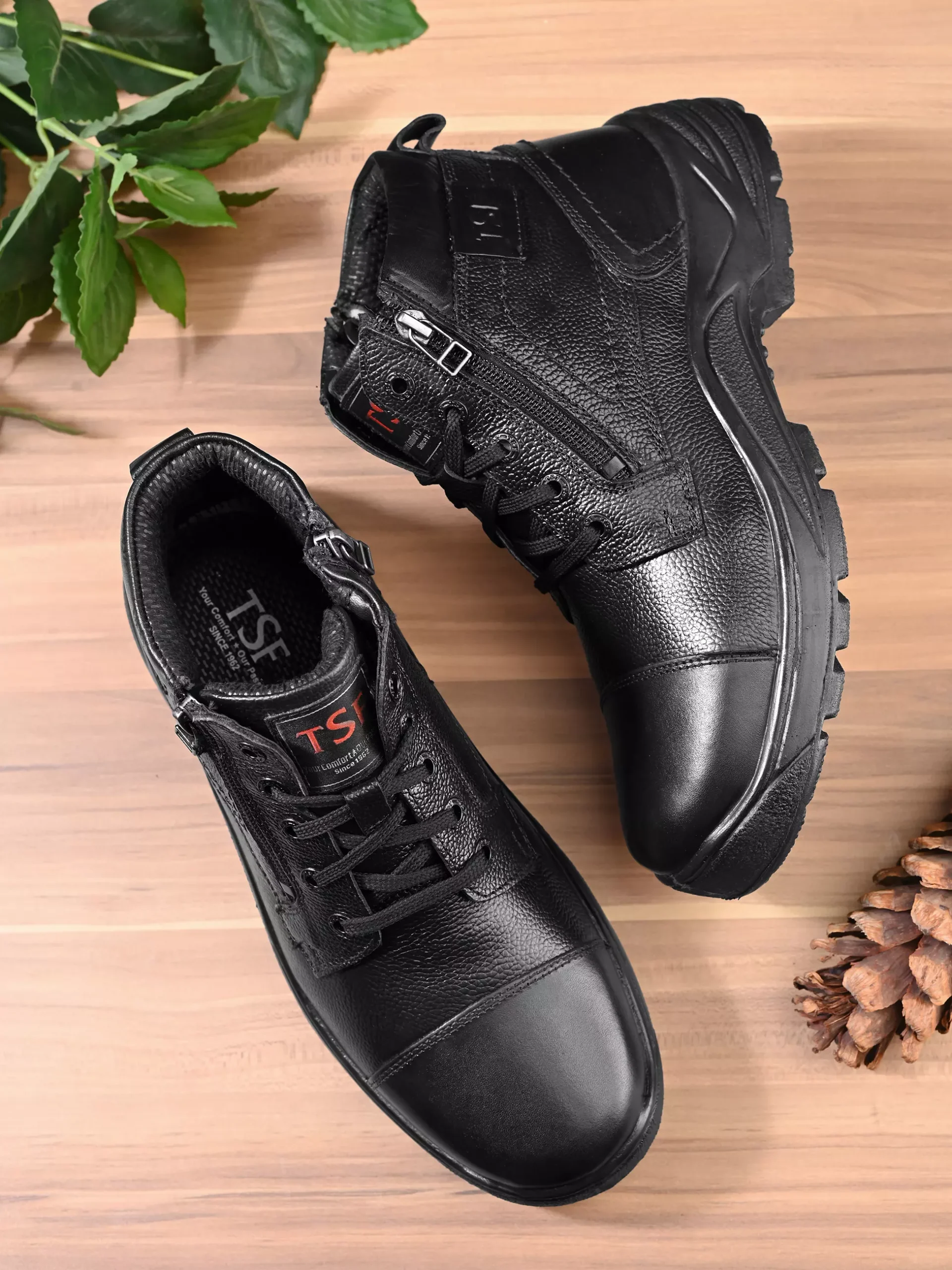 TSF Genuine Leather Double side Zip Police Boots For Men