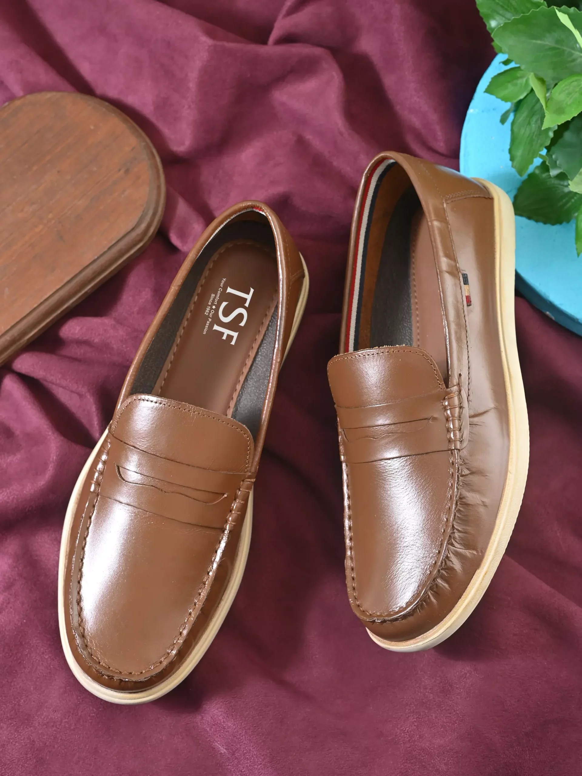 TSF Men Tan Leather Loafers