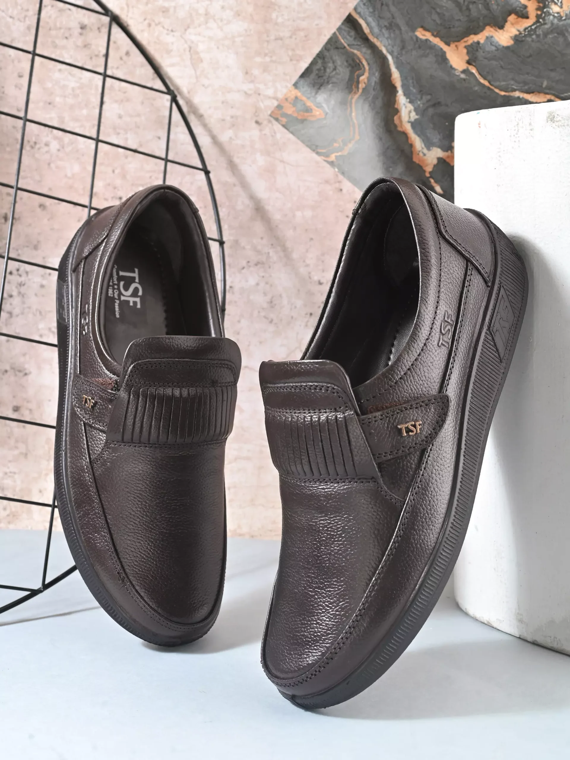 TSF Premium Brown Leather Slip-On Shoes for Men – Everyday Comfort & Smart Style