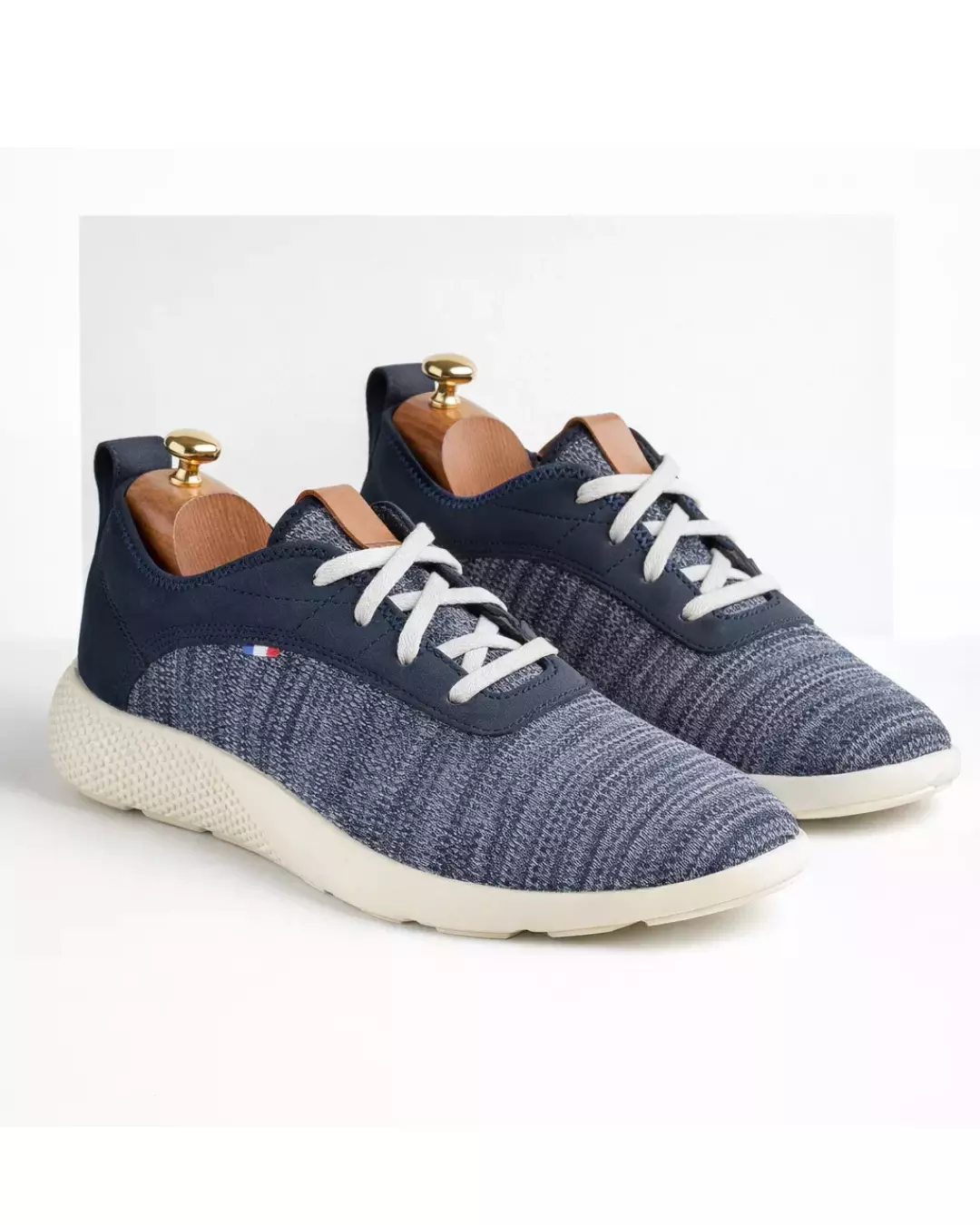 Step into refined comfort with this premium navy blue knit sneaker, thoughtfully engineered for modern everyday wear. The upper features a richly textured fabric that delivers both breathability and visual depth, complemented by smooth leather accents that enhance durability and style. Precision stitching highlights the craftsmanship, while the clean lace system ensures a secure and adaptable fit.