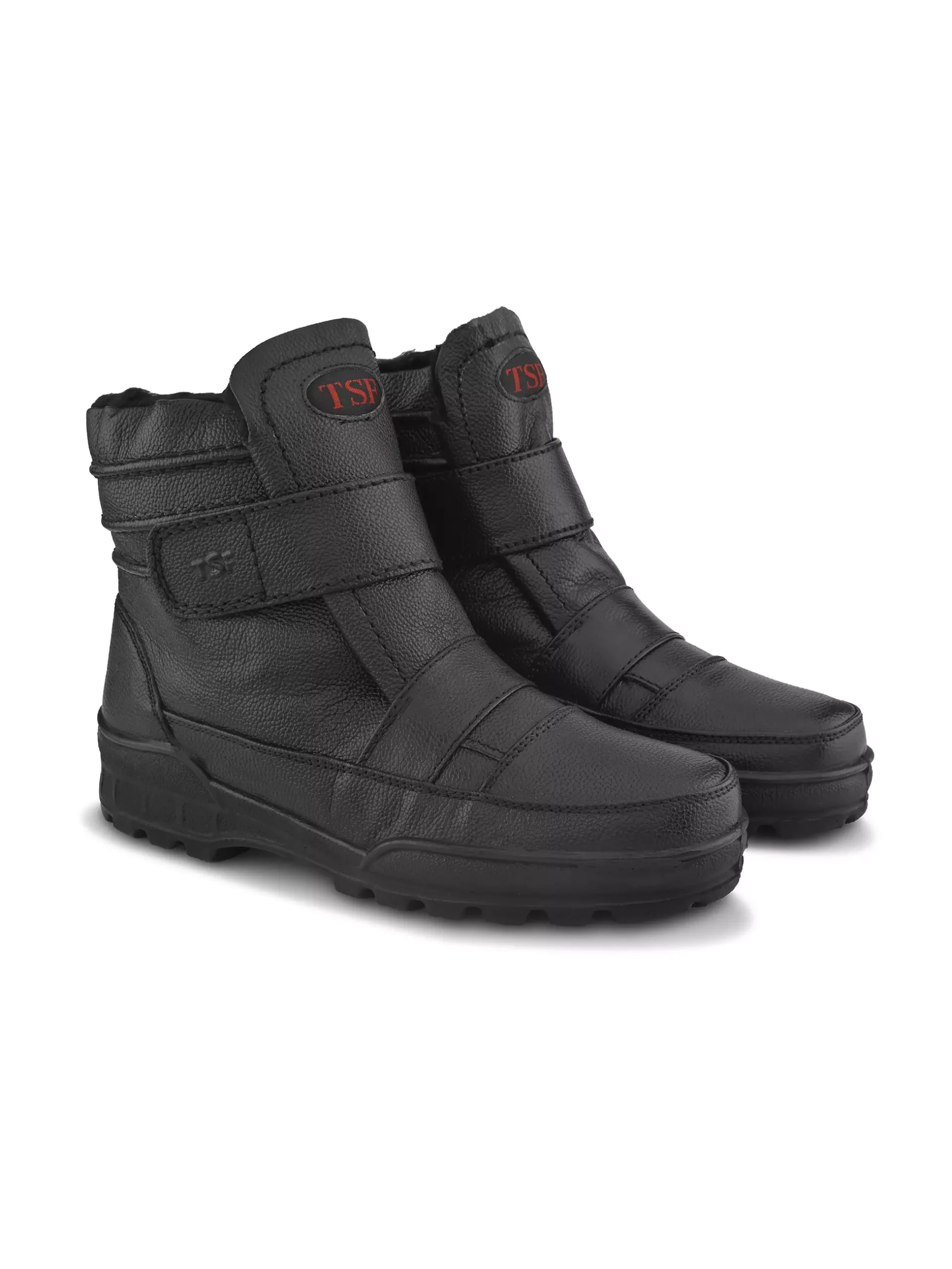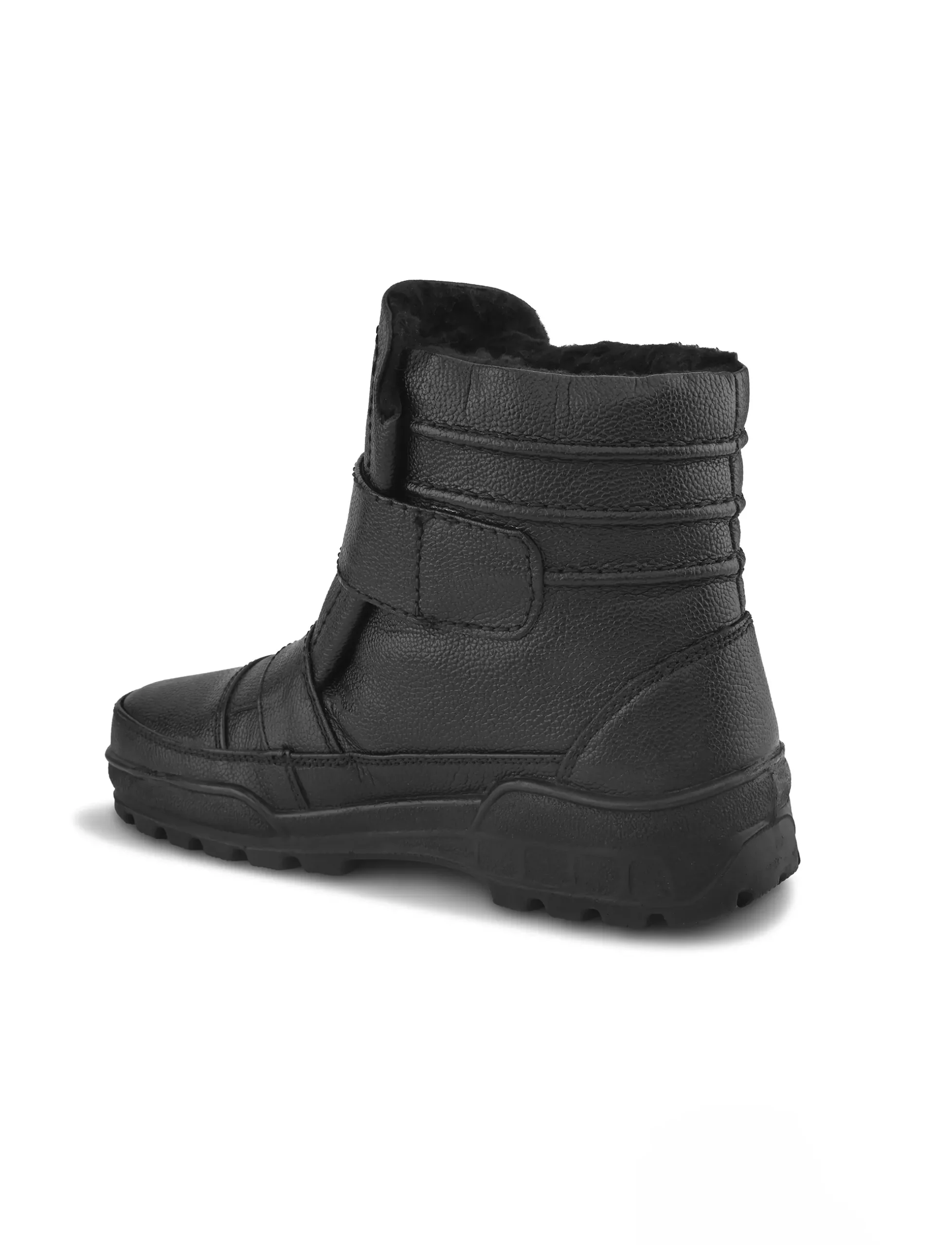 The wide adjustable strap closure ensures a secure and snug fit while allowing easy on-and-off wear. A padded ankle collar adds extra comfort and insulation, protecting against cold air and enhancing overall support. The reinforced toe structure improves durability and maintains the boot’s clean, structured shape.