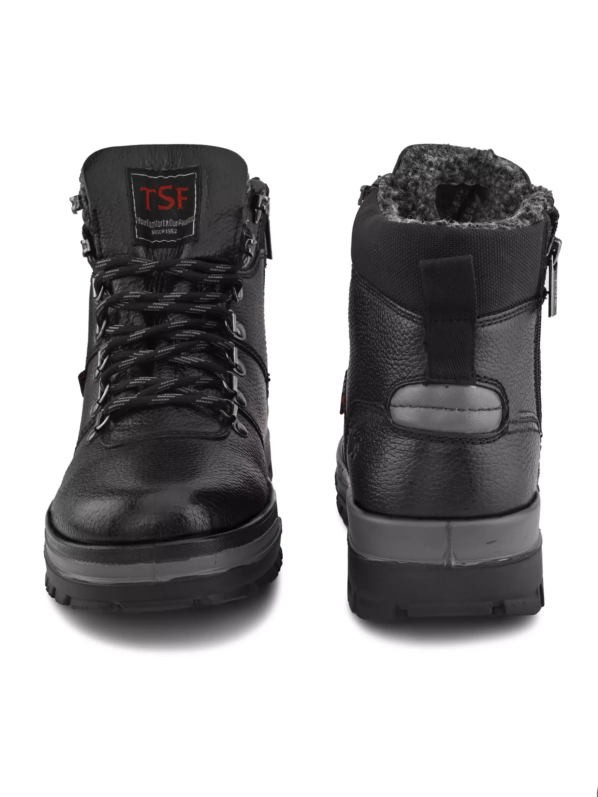 The padded ankle collar enhances support and prevents cold air from entering, while the sturdy lace-up system with durable metal hooks ensures a secure and adjustable fit. A reinforced toe structure adds extra protection and long-lasting wear, making these boots ideal for daily winter use.