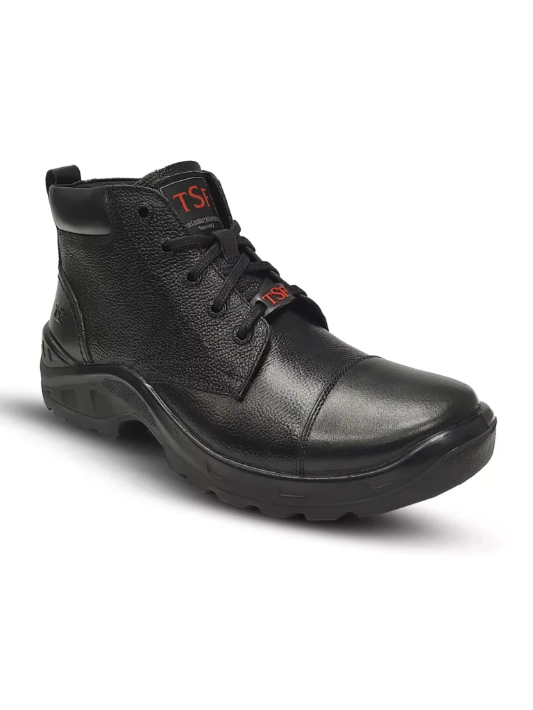 TSF MEN ROUND TOE LEATHER REGULAR BOOT – Black, UK 7 / Euro 41