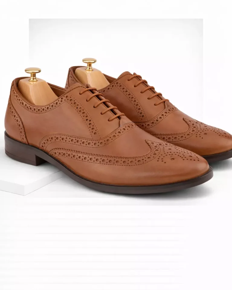 TSF Premium Tan Leather Brogue Lace-Up Shoes for Men – Classic Formal Elegance