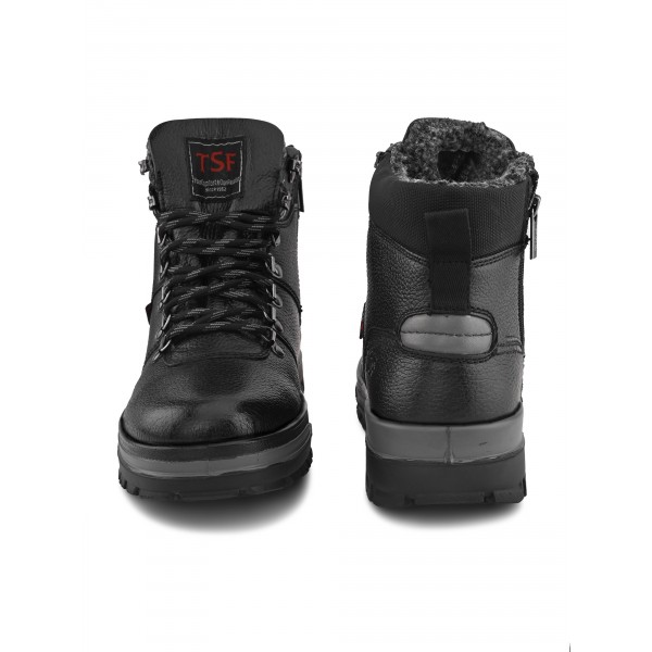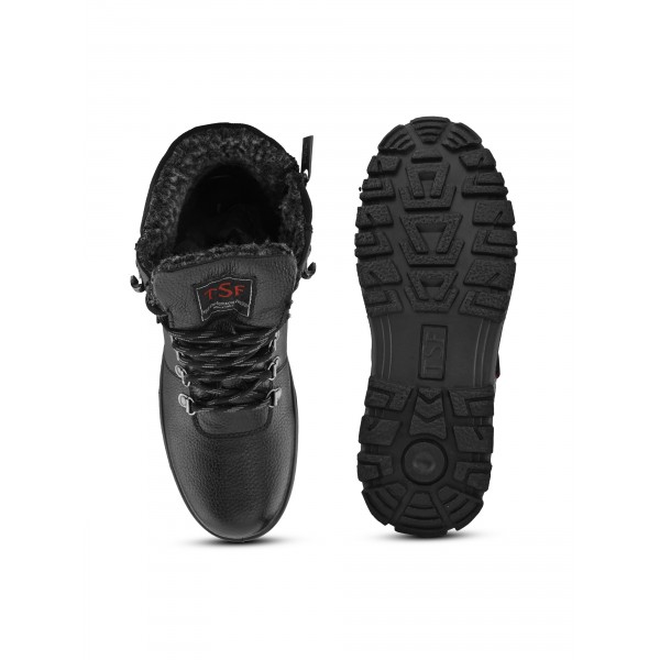 TSF CASUAL FUR BOOT WITH LACE UP FOR MEN's(BLACK)