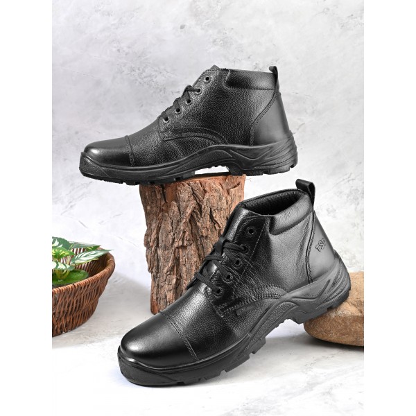 TSF Safety Boot with protect yourself from Rough Terrain, Sharp Objects, Wet Surfaces. (Protector-Black)